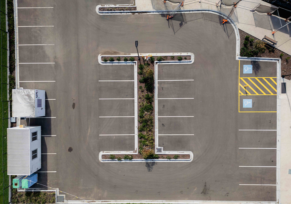 Works included full-depth asphalt pavement, council crossover works, and concrete edging for robust access around the multi-use hub, incorporating sustainable materials to reduce long-term environmental impact.
